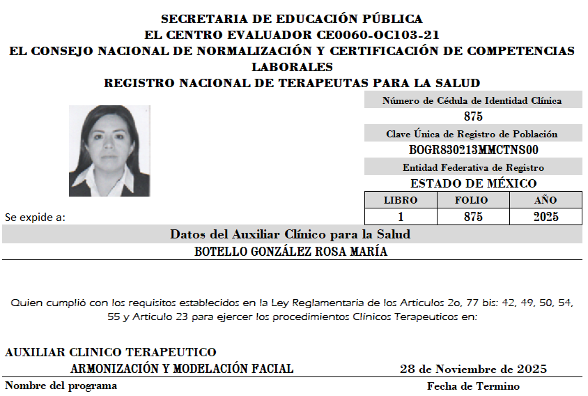 BOTELLO GONZÁLEZ ROSA MARÍA ARMONIZACIÓN Y MODELACIÓN FACIAL 00875 28-11-25