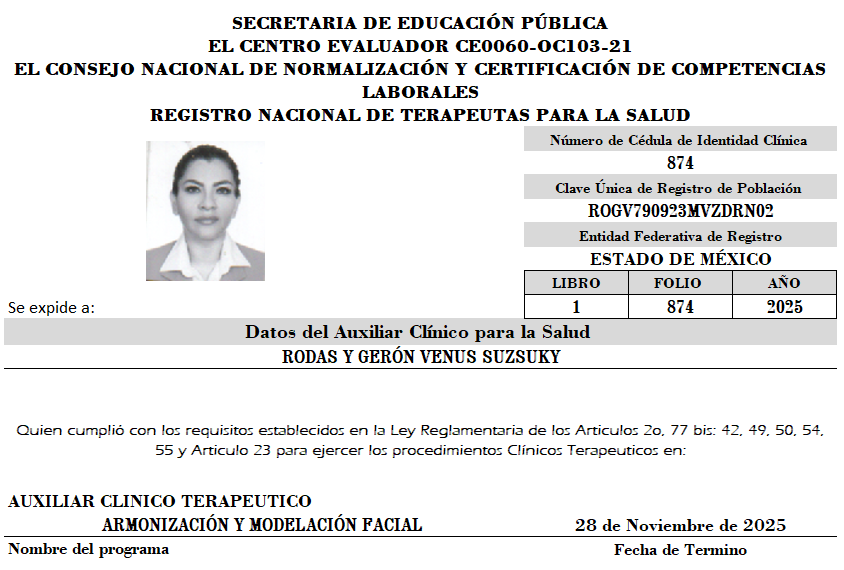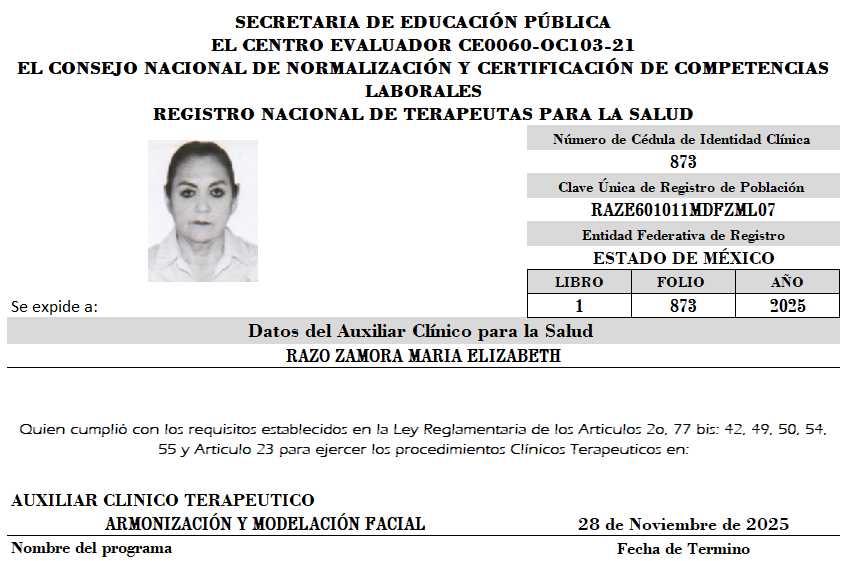 RAZO ZAMORA MARIA ELIZABETH ARMONIZACIÓN Y MODELACIÓN FACIAL 00873 28-11-25