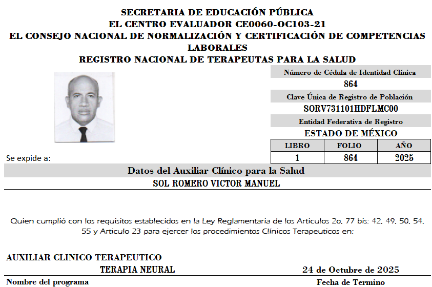SOL ROMERO VICTOR MANUEL TERAPIA NEURAL 00864 24-10-25
