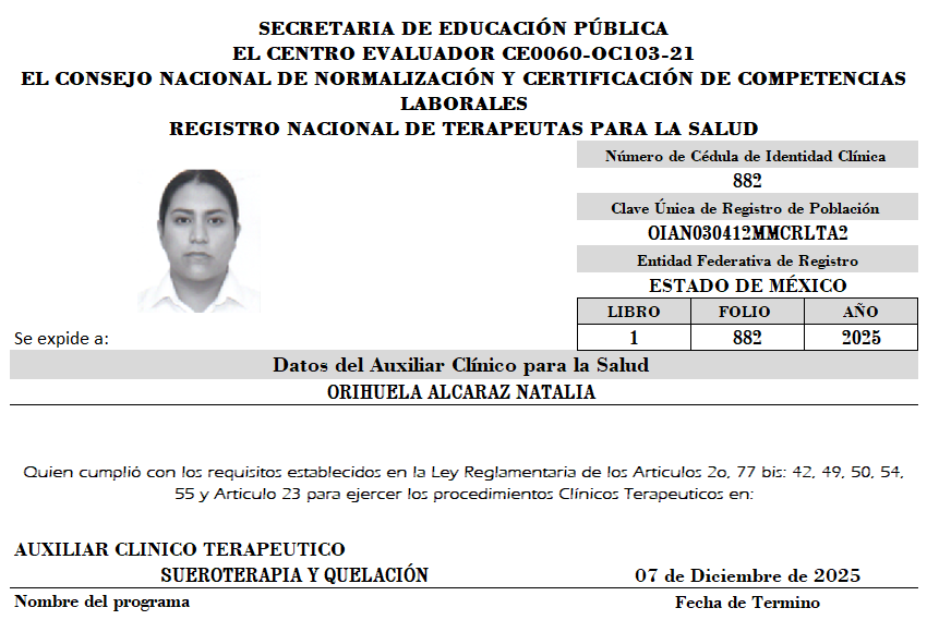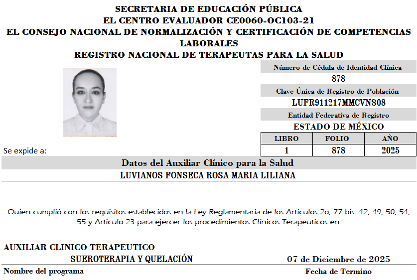 LUVIANOS FONSECA ROSA MARIA LILIANA SUEROTERAPIA Y QUELACIÓN 00878 07-12-25