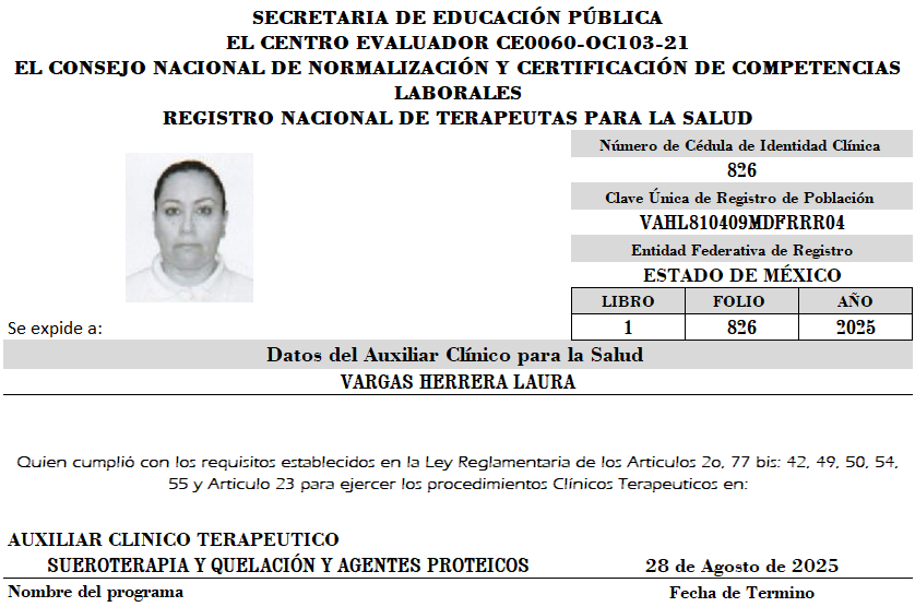 VARGAS HERRERA LAURA SUEROTERAPIA Y QUELACIÓN Y AGENTES PROTEICOS 00826 28-08-25