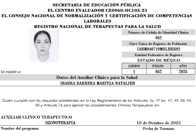IBARRA BARRERA MARITZA NATALIEH OZONOTERAPIA 00852 10-10-25