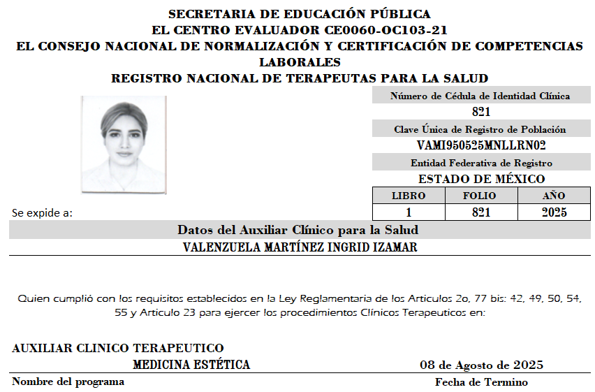 VALENZUELA MARTÍNEZ INGRID IZAMAR MEDICINA ESTÉTICA 00821 08-08-25