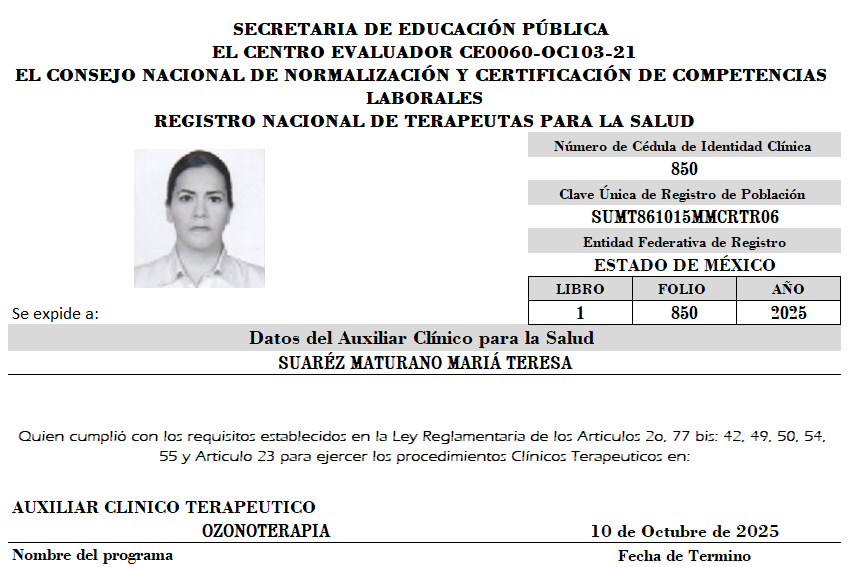 SUARÉZ MATURANO MARIÁ TERESA OZONOTERAPIA 00850 10-10-25
