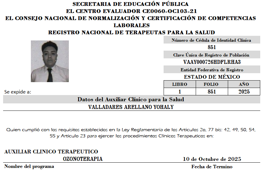 VALLADARES ARELLANO YOHALY OZONOTERAPIA 00851 10-10-25