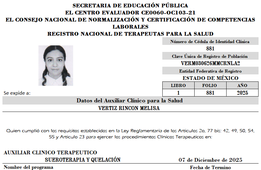 VERTIZ RINCON MELISA SUEROTERAPIA Y QUELACIÓN 00881 07-12-25