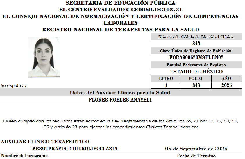 FLORES ROBLES ANAYELI MESOTERAPIA E HIDROLIPOCLASIA 00843 05-09-25