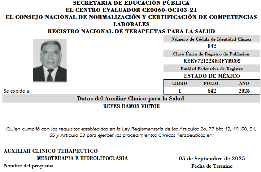 REYES RAMOS VICTOR MESOTERAPIA E HIDROLIPOCLASIA 00842 05-09-25