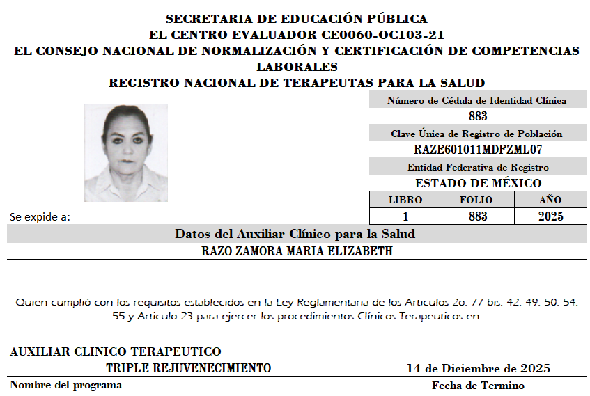 RAZO ZAMORA MARIA ELIZABETH TRIPLE REJUVENECIMIENTO 00883 14-12-25
