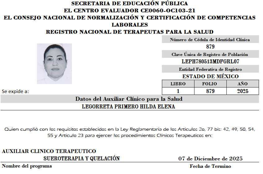 LEGORRETA PRIMERO HILDA ELENA SUEROTERAPIA Y QUELACIÓN 00879 07-12-25