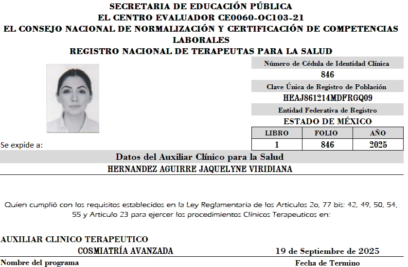 HERNANDEZ AGUIRRE JAQUELYNE VIRIDIANA COSMIATRÍA AVANZADA 00846 19-09-25