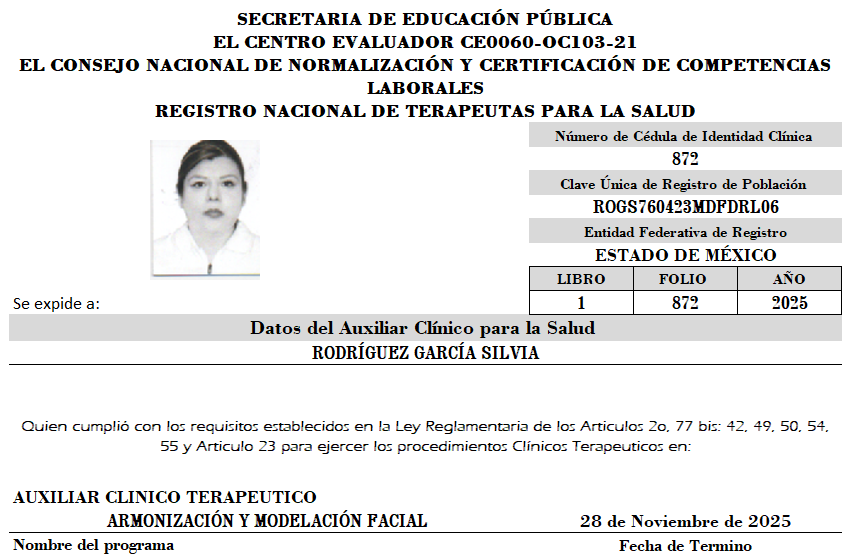 RODRÍGUEZ GARCÍA SILVIA ARMONIZACIÓN Y MODELACIÓN FACIAL 00872 28-11-25
