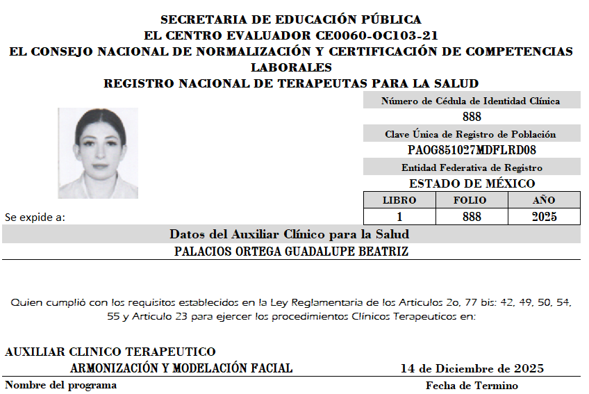PALACIOS ORTEGA GUADALUPE BEATRIZ ARMONIZACIÓN Y MODELACIÓN FACIAL 00888 14-12-25