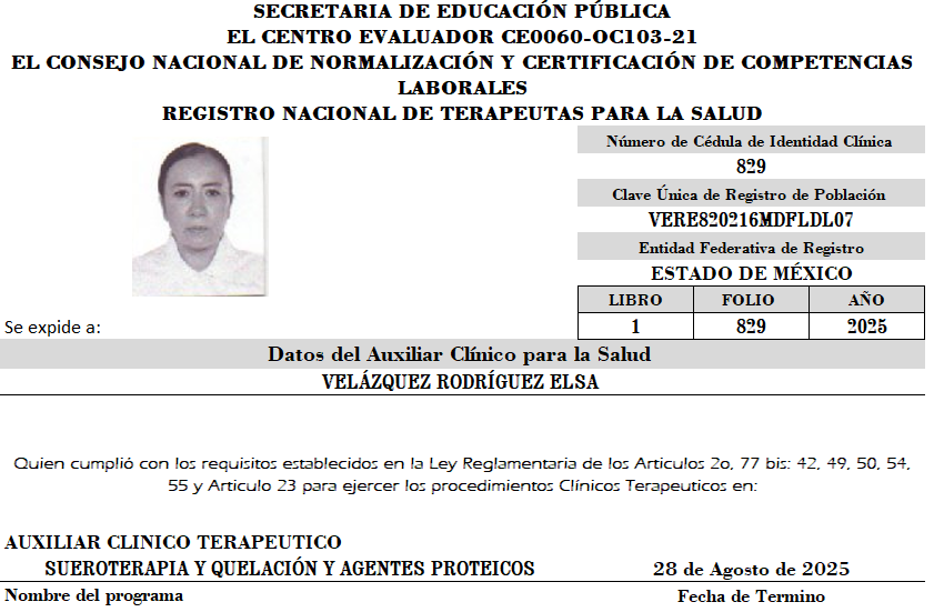 VELÁZQUEZ RODRÍGUEZ ELSA MESOTERAPIA E HIDROLIPOCLASIA 00867 26-10-25