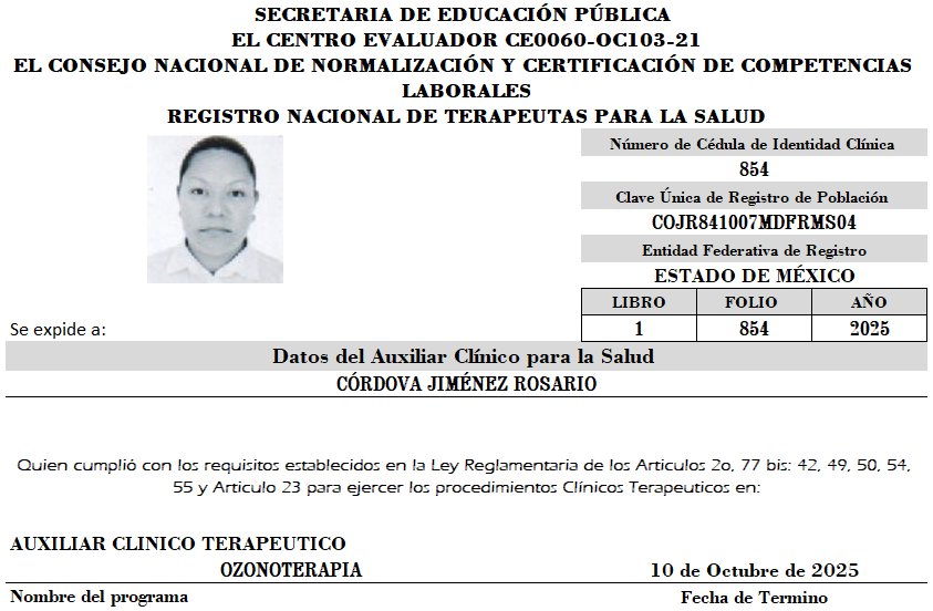 CÓRDOVA JIMÉNEZ ROSARIO OZONOTERAPIA 00854 10-10-25